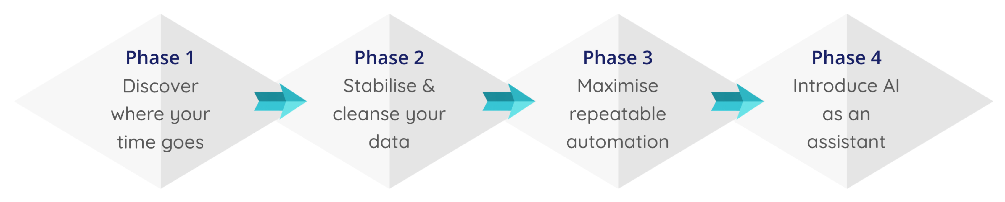 Once your data is structured, your reporting is live and your rule-based automation is handling the predictable work, AI can sit on top of it.